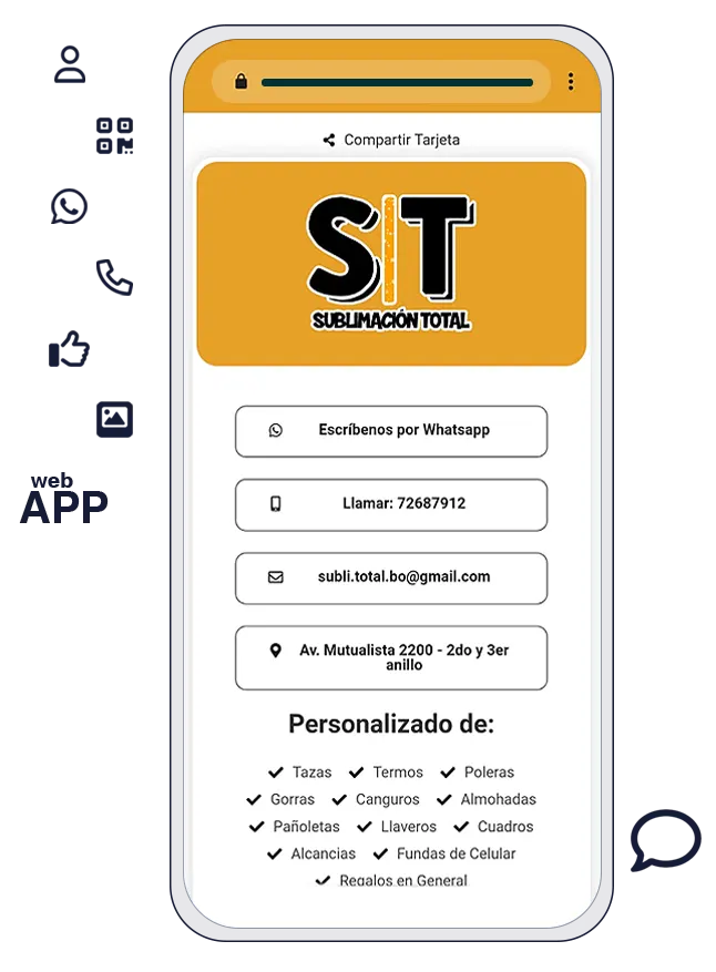 una tarjeta de presentación hibrida (web&app) permite compartir fácil información profesional, comercial, institucional, como ser teléfonos, ubicación, whatsapp, incluyendo productos y servicios entre otros.